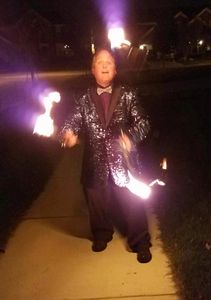 The fire torch juggling is performed outside. It is done under safe conditions. The crowd just loves to watch it and cheers and claps while Im juggling. It looks great at Michigan festivals and fairs.