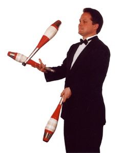 I like to juggle special juggling clubs. They look like the shape of bowling pins. They spin fast while I'm juggling and are exciting to watch. I juggle different patterns and balance one on my chin. They can be performed in my show or as a strolling walk around entertainment at a festival or fair. Strolling juggling ads to the atmosphere of a eventee. If you are having a Circus theme at your party then juggling is perfect.